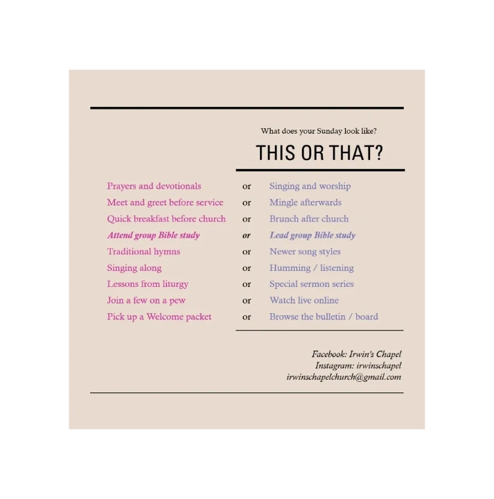 Notes taken during the sermon at Irwin's Chapel UMC, 10/5/25